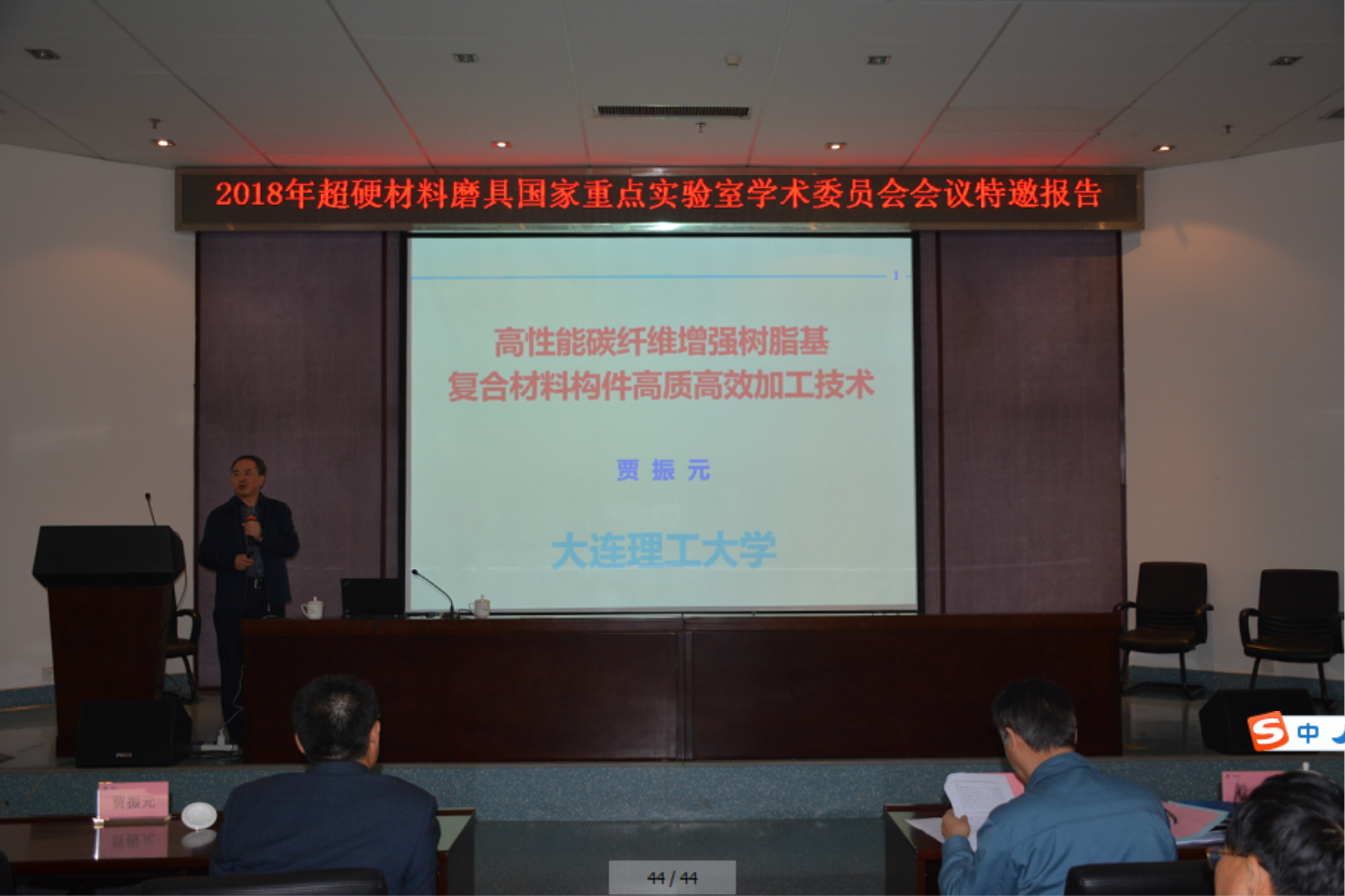 会议期间举行了学术报告会,田永君院士和贾振元教授分别做了“纳米孪晶金刚石及其硬度限”和“高性能碳纤维增强树脂基复合材料构件高质高效加工技术”的学术报告。